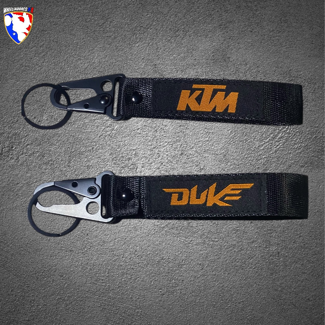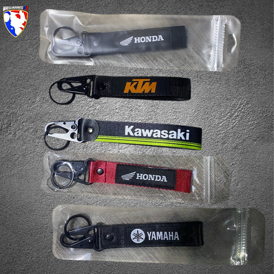 Durable motocross-inspired keychain with heavy-duty metal clip and woven strap. Perfect for motorcycle lovers, riders, and streetwear fans. Great for keys, backpacks, and gear.